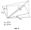 If each delay value comprises for example two scatteringobjects10 of different Doppler shifts Δωq1, Δωq2, each contributing a complex portion D1.q1and D1.q2to the total delay coefficient Si.L−1for time period L−1, then their contributions for time period L may be updated to D1.q1ejωi.q1ΔTand D1.q2ejω1.q2ΔTfor period L, ΔT later.FIG. 11 shows how the resultant vector changes by an amount θ, which is computable by vector arithmetic, and that angular change is then attributed to a change ΔTiof the time delay Ti, where ΔTi=θ/ω, ω being the center frequency.