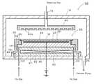 Theupper electrode60 is placed above and away from thewafer mount surface24 of theelectrostatic chuck22. A high-frequency power source (not shown) is connected between theupper electrode60 and theinternal electrode28 of theelectrostatic chuck22. A high-frequency power is supplied from the high-frequency power source during plasma generation of the reactive gas.