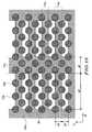 In consideration of the above, the present inventor performed an evaluation on a support film described in Japanese Patent Laid-Open No. 2003-297952 and linearly extending only in one horizontal or vertical direction but modified so as to accommodate a 6F2memory cell.FIG. 17 illustrates a schematic plan view of a support film arrangement used for the evaluation.Lower electrodes101 are arranged so as to formhexagon102.Reference numeral110 denotes a support film arranged so as to linearly extend in an X-direction. A linear opening pattern with approximately the same width as the support film is provided betweenadjacent support films110.