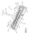 In contrast, the disengagement of the end of the lockingpin52 from any of theapertures54 of therail track20 will still maintain the mountingsegments17 and19 into engagement with one another such that rotation ofhandle16′ and the mountingsegment19 is prohibited. However, when the lockingpin52 is in this position, each of the hand grips16 will still be allowed to reciprocally move along the length of thetrack assembly14 in that thepin52 no longer is connected to thetrack rail20. Moreover, when the lockingpin52 of each of the hand grips16 is raised or otherwise disposed in an orientation which it does not engage thetrack rail20 or the mountingsegment17, thehandle16′ as well as the mountingsegment19 are able to rotate relative to the mountingsegments17 and thetrack assembly14 as well as concurrently move along the length thereof as described above.