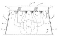Further, appropriatemechanical linkage42 and43 will be disposed and structured to interconnect therelease assemblies40 to the one ormore biasing structures42′ and also serve to removably retain theleg structures30 and32 in the non-supporting orientation. One or more different mechanical linkage assemblies may be utilized for this purpose and function. Therefore, regardless of the specific mechanical linkage utilized, the manipulation of therelease assemblies40 “releases” theleg structures30 and32, thereby facilitating their “automatic” disposition into the supporting orientation ofFIGS. 1, as the biasing forces are exerted thereon by the biasingstructures42′. It should be further apparent that theleg structures30 and32, including each of the fourleg segments30′30′ and32′32′, are pivotally attached, as at35, to the base12 so as to be pivotally disposed into and out of the supporting orientation ofFIG. 1, as schematically represented bydirectional arrows37.