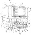 TheCPU60 can be in communication with the register system andbeverage dispenser40. The register system andbeverage dispenser40 have transmitters, and are in communication withcontroller60. For example,controller60 can receive signals from the transmitter and then can communicate with thebeverage dispenser40 to cause thedispenser40 to dispense or not dispense liquid when one of actuators26-33 is moved. In one embodiment, when the customer buys a drink, the register sends a signal based on data from the transmitter.Controller60 can communicate with the transmitter to control the liquid dispensed bydispenser40. Alternatively,controller60 can let the restaurant know, for example, through a signal to the register system and/or a display, that someone is seeking an unauthorized refill. Preferably, the transmitter is proximate todispenser40 to ensure proper communication between the transmitter andRFID tag70. Although not illustrated,controller60 can be at various locations on the vendor' premises. For example,controller60 can be withinhousing5 of thedispenser40 or underneath a counter, preferably not accessible to the public. Of course, the vendor can be a drink seller, such as a fast food restaurant, food court, a concession stand (e.g., at an amusement park), cafeteria, or the like.