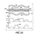 FIG. 22 is a cross-sectional view of another displacement control arrangement that can be included in an encoding/sensing component as inFIG. 2, together with a graph showing exemplary sensing results for exemplary types of objects.