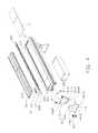 Thefins14 are parallel to thefixing plates16 and the two opposite lateral sides of theheat spreader12 and have top edges lower than top edges of thefixing plates16 and thelocking plates160. A plurality ofelongated grooves18 are spaced from each other and are defined in two opposite lateral sides of thehousing10 and parallel to each other. Theelongated grooves18 extend from one end to another opposite end of the lateral sides of thehousing10 along a lengthwise direction and have openings at two opposite ends. Two separated ones of theelongated grooves18 at each side of thehousing10 respectively have two elongated openings facing laterally and inclined to each other. An upper one of the twoelongated grooves18 faces laterally and downwardly, while a lower one faces laterally and upwardly.