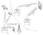 Referring next toFIG. 5, shown is a block diagram illustrating an example system for wireless object tracking Shown are examples of a trackedobject401, a “home” device with which the trackedobject401 is registered, an examplecellular tower503, anexample satellite device505. Also shown are representations of examples of a few various possible types of communication signals507509511513 between the example trackedobject401, the example “home” device with which the trackedobject401 is registered, the examplecellular tower503, and theexample satellite device505. For example, the communication signals507 between the example trackedobject401 and the example “home” device may include but are not limited to one or more of the following: cellular network signals, Wi-Fi network signals, BlueTooth® signals, short or long range radio signals, RFID signals, infrared signals, sonic and ultrasonic signals, global positioning system (GPS) signals and other radio signals, optical and laser signals, and signals across any known spectrum of wavelengths and/or frequency. The satellite communication signals507 between the example trackedobject401 and theexample satellite device513 may include but are not limited to signal intended for one or more of the following networks: cellular network, Wi-Fi network, GPS, other communications networks. Each device shown inFIG. 5 is equipped with the appropriate signal processing hardware and/or software and back end networking equipment to receive and send signals to communicate over the applicable network of choice.