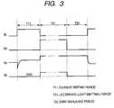 Therefore, according to this example, the same effects as those of Example 1 can be obtained. Further, in this example, a dark displaying period is provided, and the LED driving period is set to ¼ of that of Example 1, and the current flowing through the organic EL device LED is set to 4 times as much as that of Example 1. As a result, the time average luminance can be set to be substantially equal to that of Example 1. On the other hand, the current supplied from the data line becomes 4 times as much as that of Example 1, so the current writing period can be shortened, and application to a larger and higher-definition display is possible as compared with Example 1.
