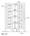 FIG. 12 is a front view, ground level schematic showing four large units similar to those shown inFIG. 4 or9 stacked vertically in a supporting framework;