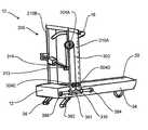 Weight316 can be any structure having mass. In the illustrative example shown,weight316 is a solid mass having an internal threaded passage extending from a first side to an opposite second side or, as disclosed in connection withFIG. 8, a combination of aninternal passage352 and threadednut350. Internal threaded passage ornut350 cooperates with the screw thread on weight adjusting drive such that when weight adjusting drive is turned or rotated byweight adjusting motor324,weight316 is forced to move linearly.Weight316 can comprise optional wheels332 on the bottom and optionally on the top that cooperate withmoment arm314 to allow the easier movement ofweight316 alongmoment arm314. Thus, asweight adjusting motor324 turnsweight adjusting drive318, the complimentary screw threads cooperate and forceweight316 to move linearly along or relative tomoment arm314.