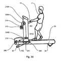 Additionally connected to the microprocessor or other suitable electronic controller are the various display and other elements of the pushing and pullingmeans16 and theconsole212. For the sake of simplicity, the signals are transmitted to and from the microprocessor or other suitable electronic controller to the pushing and pullingmeans16 andconsole212, and are operatively connected to switches, dials, etcetera on the pushing and pullingmeans16 andconsole212 and the specific elements, such as belt motor, incline motor, and momentarm resistance mechanism300. Again, the use of this type of microprocessor or other suitable electronic controller is well known in the treadmill art.