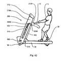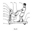 FIG. 33 is a perspective view in partial cutaway of an alternate embodiment of the invention havingindependent handles16A,16B.Handles16A,16B are pivotally attached to consolearms212A,212B, respectively, which in turn are attached to console uprights210. In this embodiment,console support structure212 is rigidly attached tolower frame34 and does not pivot or slide. In this embodiment, the user U pushes forward onhandles16A,16B while walking in a forwards direction to effect a pushing regimen and pulls onhandles16A,16B while walking in a backwards direction to effect a pulling regimen.