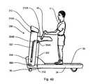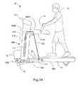 FIG. 39 is a perspective left side view of an alternate embodiment of the invention having a pivoting pushing and pullingconsole support structure200 This embodiment comprises pivotinguprights210, which are pivotally attached tolower frame34 at pivot points390 via known means, such as bearings or journals. In operation, a user pushes or pulls uponhandle16, thus pivotingconsole support structure200 forwards or backwards, respectively, while walking forwards or backwards, respectively.