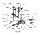 FIGS. 20-24 illustrate several exemplary alternate embodiments of the invention.FIG. 20 is a perspective view of an alternate embodiment of the invention having a pushingbar16C, rather than two separate pushinghandles16A,16B, pivotally connected to bothconsole arms212A,212B. In this embodiment, user US pushes on pushingbar16C, which activatesresistance mechanism300. This embodiment can comprise a simplified cable and pulley configuration. As shown,main cable302 can attach directly to pushingarm14, loop over a singledirectional pulley306 and then connect directly tocable attachment313. Thus, pushing the pushingbar16C, a direct cable connection is made tomoment arm314 without the need for liftingpulley308 orsecondary cable326. A liftingpulley308 andsecondary cable326 can be used if desired to step down the effect of pushingbar16C. Additionally, a separate attachment ofmain cable302 to a second pushingarm14B is unnecessary. Similarly, an accessory configured like pushingbar16C can be supplied, which accessory can fit over pushinghandles16A,16B and act as pushingbar16C.