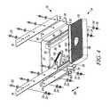 In some applications it may be desired to provideslot walls70 defining aslot71 extending through thewall65 of therail54. Theslot71 is aligned with thepin aperture61 in theguide50 and apin91 may extend through theside wall34 of theframe18, through thepin aperture61 of theguide50, through theslot aperture71 and into the interior73 of therail54. Thepin91 tends to help maintain the alignment of therail54 in theguide50.