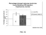 FIG. 12 shows the percentage change in glucose levels two hours following an LPS injection in treatment vs. control. LPS was administered to C57BL/6 mice at 0.2 mg/kg. Mice were bled approximately 2 h after LPS injection (T=0). Changes in glucose levels were examined.