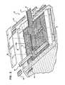 One such closure assembly comprises a cover support generally indicated at46 and a cover generally indicated at48. One embodiment of acover support46 is shown inFIGS. 10 and 11. Thecover support46 includes anapron50 for extending under the roofing panel, with theapron50 including acheck52 along one edge of the apron. Thecover support46 also includes aslot housing54 connected to theapron50 at its opposite edge and forming a slot for receiving an edge of aroofing panel12. Apocket housing57 is disposed above theslot housing54 and defines a pocket. Thepocket housing57 may take various shapes, and it includes acover mounting flange58. In the embodiment shown in the figures, thecover mounting flange58 is supported by a generallyvertical side wall56 that extends up from a pocket housing base55. Thepocket housing57 may be made in other shapes to support itscover mounting flange58. As indicated inFIG. 2, the pocket defined by thepocket housing57 is sized to receive an entire edge of aroofing panel12 including an edge of the roofingpanel receiving flange24. Cover supports46 may be constructed in left-hand and right-hand versions for fitting to opposite ends of rows ofroofing panels12 of acomplete roofing system10.