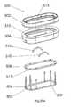 Lower element support224, upon which is affixedcompression element216, is positioned abovespring element214.Compression element216 may be made of any of a number of rigid plastics or metals whilesupport224 is formed of any of a number of rigid plastics or metals. The positioning of the constituent elements oflower element250 is illustrated inFIGS. 17-20, to which the reader is directed.Lower element support224 upon which is affixedcompression element216 is held withinneedle support210 by a plurality of securingcatches226 best seen inFIGS. 15,16 and20. The sides ofneedle support210 perpendicular to its long axis may be open or closed. The positioning ofneedles212, while shown inFIGS. 15-20, is best presented inFIG. 20.