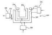 As an alternative to or in addition to evanescent coupling, inductive coupling can also provide amplitude and/or phase control of signals carried in one or more of the split rings302,304. In one approach, the secondactive circuit308 ofFIG. 3 can provide additional signal strength within thesplit ring304. In this approach, the secondactive circuit308, responsive to a control signal, produces current in the coupledsensor310, which in this arrangement acts as a field generator, in addition to, or instead of, acting as a sensor. The coupling of signals between a magnetic field generator and a conductor such as thesplit ring304 produces current in the conductor according to conventional electromagnetic carried.