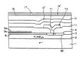 The insulatingfilms4band9b, with thicknesses of approximately 400 to 800 angstroms, are formed on the surface of the semiconductor substrate inside the openings by heat oxidation. Theelectrodes4aand9aare formed such that an approximately 1000 to 3000 angstroms thick silicide layer is formed from a refractory metal, such as Mo or W, on an approximately 1000 to 2000 angstroms thick polysilicon layer. The source anddrain regions5aand5bare formed in a self aligned manner as follows: by ion implantation, N-type impurities are doped into the surface of the substrate at both sides of thegate electrode4ausing thegate electrode4aas a mask. A portion of the well region just below thegate electrode4ais used as achannel region5cof the MOSFET.
