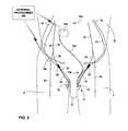 In an embodiment in which two or more electrodes are implanted along the sameilioinguinal nerve31, the electrodes may form a bipolar pair that is referenced between two electrodes deployed byleads18,19, or be individually referenced to an electrical potential associated with an electrode on the housing ofIMD28. Also, in some embodiments, multiple cuffs or leads may be implanted along a singleilioinguinal nerve31, and each may carry multiple electrodes, e.g., in an axial or planar array, providing still more possible electrode combinations for selection by a physician. In addition, one or more electrodes may be deployed to stimulate one or bothilioinguinal nerves30,31, as described with reference toFIG. 1.
