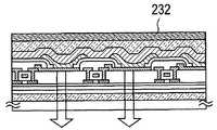 Afterwards, as shown inFIG. 4 (D), the second substrate is peeled. Then, as shown inFIG. 4 (E), a sealingfilm232 is formed to complete a bottom emission light emitting device.