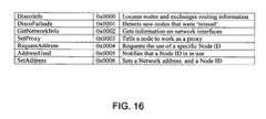 FIG. 14 also shows an example SV message, which may include a count, SV_ID, data type and value. The SV_ID may be used to indicate the destination SV. The data type may indicate the size and format of the SV data. For example, the data type may indicate whether the value is byte, word, float, string or block. The value may be used to indicate the SV data actually being transported.FIG. 15 is a table containing example Application layer messages that may be used with the system.FIG. 16 is a table containing example routing layer messages that may be used with the system.