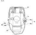 The second engagement section is realized by aconvex portion60aformed on an external lateral face of thehousing body1. The first engagement section is realized by a plurality ofconcave portions60b, which are arranged serially on the internal lateral face of the cover cap C2 to be engaged with theconvex portion60a. Further, as shown inFIG. 23, the second engagement section includesconvex portions60cformed on the external bottom face of thelower housing body1b, and the first engagement section includes aconvex portions60dformed on the internal lateral face of the cover cap C2 to be engaged with theconvex portion60c. Theconvex portion60chas a wavy cross-section as formed of a plurality of adjacent concave portions. The vibrating means60 is not limited to the one in the figure, and may have a variety of shapes, such as a fin shape, a pectinate shape, etc.