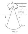 FIG. 2 is a plan view of an ultrasound transducer used in the system ofFIG. 1 to treat a target tissue mass located in the interior region of a patient;