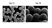 FIGS. 7A and 7B illustrate SEM images of poly-2-hydroxyethyl methacrylate (pHEMA)-modified crosslinked polystyrene particles. The scale bars represent 5 μm and 2 μm, respectively.