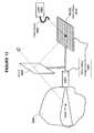 The hologram pattern can be calculated using the lens equation: 1/x+1/y=1/f (where x=distance from lens on one side; y=distance from lens on the other side; and f=focal length). A series of correspondence points thus exists on opposite sides of the lens which can be used to project the array of emission points (from the MEMS micro mirrors or LCD device) to the corresponding virtual locations in the ultrasound slice. In other words, a single hologram can map the whole image, rather than a separate hologram for each pixel. The same approach could be used to map from the MEMS (or LCD) device mounted parallel to the HOE to a “C-mode” slice from a 3D ultrasound machine, as described earlier and shown inFIG. 3.