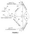 InFIG. 1, the half-silveredmirror20 is depicted extending vertically up from theultrasound transducer12 midway along the transducer handle, but, in fact, themirror20 may be located at some other position in another vertical plane either behind or in front of the depicted vertical plane. More specifically, theFIG. 1 half-silveredmirror20 could be translated forward or backward (or even tilted) as long as thedisplay32 is moved in a way that corresponds appropriately (as described in detail below).