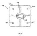 FIG. 10 also illustrates a stabilizingmember1014 that is integrally formed with thefirst plate1002. In an alternative embodiment, the stabilizingmember1014 may be attached to thefirst plate1002 in any suitable manner, such as bonding, gluing, cementing, and the like. In the example shown inFIG. 10, the stabilizingmember1014 extends laterally straight across the entire surface of thefirst plate1002. However, the stabilizingmember1014 may extend across any portion of thefirst plate1002 and may extend in any direction. The stabilizingmember1014 may extend in a straight or curved line.