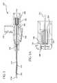 FIG. 3 is a sectional view of the catheter assembly ofFIG. 2 after insertion of the catheter and as a needle is being withdrawn.