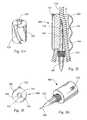FIGS. 5-5C show a third embodiment of a detachablecatheter advancement device500. Thebody502 of thecatheter advancement device500 contains a motor that rotates a rotary grasping means504 (e.g., a sleeve, a set of rollers, or some other appropriate structure with a surface frictionally sufficient to rotate a spiral catheter of the present invention). The structure of thecatheter advancement device500 is shown most clearly with reference to the side view ofFIG. 5 and the transverse cross-sectional view inFIG. 5A (taken alongline5A-5A ofFIG. 5). Aballoon catheter520 having a spiral proximal portion (for example, similar to thecatheter device200 described with reference toFIGS. 2-2C) may be fed longitudinally through thecatheter advancement device500 and then advanced over awire guide522. Awire guide clamp510 of aclamp unit508, shown inFIG. 5B, is mounted by abase clamp509 to aproximal bracket511 of thecatheter advancement device500. Thebase clamp509 alternatively may be mounted to a different structure, such as an endoscope accessory. Thewire guide clamp510 is passed through the spiral portion and clamped to thewire guide522, as shown inFIG. 5C. Although the position of thewire guide clamp510 is shown proximally of thebody502 of thecatheter advancement device500, thewire guide clamp510 from the spiral portion of thecatheter520 may be distal of the catheteradvancement device body502.