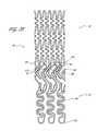 Referring now toFIG. 2B, in various embodiments,fronds16 can comprise thin filaments formed intoloops17. An exemplary embodiment of aprosthesis structure50 having a plurality offilament loops17 is shown inFIG. 2B in a rolled out pattern. In various embodiments filamentloops17 can have at least one or two or moreintra-filament connectors18,19 which extend in a circumferential direction to connect two adjacent filaments defining afilament loop17.Connectors18,19 preferably include at least one nonlinear undulation such as a “U”, “V” or “W” or “S” shape to permit radial expansion of the prosthesis in the vicinity of the fronds.