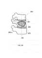 As shown inFIG. 2G, in one embodiment, a quantity ofbone filler material255 can be housed in acartridge252 attached todelivery nozzle253. Ahydraulic actuator250 can then be used to remotely expressbone filler material255 fromcartridge252 via a hydraulic line251 (e.g.,cartridge252 can include a piston that is driven by the hydraulic pressure supplied by hydraulic line251). Note, however, that in various other embodiments,bone filler material255 can be delivered to cavity202-V in any number of different ways (e.g., a high pressure cement delivery pump that delivers the cement tonozzle253 through a flexible line, or a syringe or other delivery device filled withbone filler material255 that is attached directly to nozzle253), In addition, in various other embodiments,bone filler material255 can be delivered in multiple portions of the same or different materials (e.g., a bone cement followed by a biologic agent).