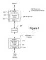 FIG. 4 shows a power line communication device (PLCD)200, according to an example embodiment of the present invention. ThePLCD200 includes a pair of interfaces, including apower line interface202 and anothernetwork interface204. Thepower line interface202 couples to a power line, such as a medium voltage power line or a low voltage power line, allowing communications to be sent and received using power lines. Theother network interface204 may couple thePLCD200 to another portion of the power line network or to a non-power line network, such as a wireless network. Different portions of the power line network may implement different protocols and/or different communication schemes, which may be bridged by this example embodiment. For example, in one embodiment, thepower line interface202 may couple to a portion of a power line network implementing the multiband PLC communication scheme, as shown inFIG. 5a, while in others a narrowband scheme may be used as described with respect toFIG. 5bin which casepower line interface202 may employ a conventionalOFDM protocol stack100. Theother network interface204 may couple to a portion of the power line network implementing a broadband PLC communication scheme (e.g., a wideband communications scheme or one operating in a frequency spectrum that is at least as broad as two, three, four or more multibands or narrow bands—e.g., operating in frequencies from 1 MHz to 80 MHz).