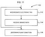 FIG. 11 is a flow chart illustrating amethod1101 used by a system for monitoring the environment of at least one plant using an electronic tag, according to an embodiment. Referring toFIG. 1, the steps shown inFIG. 11 may be performed substantially completely by aninterrogator106, by one or moreremote resources116a,116b, or by a combination of computing resources.