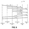 FIG. 9 shows a signal diagram of one embodiment of communications between mote device(s) or other devices to locate the mote device(s);