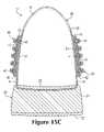 Foundation element31 is depicted inFIG. 3 as being formed from a single layer of material. Referring toFIG. 15A, however,foundation element31 includes three layers. As examples, the inner and outer layers may be textiles, whereas the central layer may be a comfort-enhancing polymer foam material. When an embroidery process is utilized to locatestrands41, two sets ofstrands41 may be located on opposite sides ofbase layer42, as depicted inFIG. 15B. Anadditional layer45 may also extend between the second set ofstrands41 andfoundation element31, as depicted inFIG. 15C. As withbase layer42,layer45 may include a thermoplastic polymer material that induces bonding betweentensile element40 andfoundation element31. In general, the configuration depicted inFIG. 15C may be similar to a structure disclosed in U.S. patent application Ser. No. 12/180,235, which was entitled Composite Element With A Polymer Connecting Layer and filed in the U.S. Patent and Trademark Office on 25 Jul. 2008, such application being incorporated herein by reference. Referring toFIG. 15D,tensile element40 is depicted as being joined with the interior surface offoundation element31. In further configurations,cover layer43 may be absent, as depicted inFIG. 15E, orbase layer42 may be absent, as depicted inFIG. 15F.