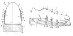During walking, running, or other ambulatory activities, a foot within the void infootwear10 may tend to stretch upper30. That is, many of the material elements forming upper30, includingfoundation element31, may stretch when placed in tension by movements of the foot. Althoughstrands41 may also stretch,strands41 generally stretch to a lesser degree than the other material elements forming upper30 (e.g.,foundation element31,base layer42, and cover layer43). Each ofstrands41 may be located, therefore, to form structural components in upper30 that resist stretching in specific directions or reinforce locations where forces are concentrated. As an example, thevarious strands41 that extend betweenlace apertures34 andsole structure20 resist stretch in the medial-lateral direction (i.e., in a direction extending around upper30). Thesestrands41 are also positioned adjacent to and radiate outward fromlace apertures34 to resist stretch due to tension inlace33. As another example, thevarious strands41 that extend betweenforefoot region11 andheel region13 resist stretch in a longitudinal direction (i.e., in a direction extending through each of regions11-13). Accordingly,strands41 are located to form structural components in upper30 that resist stretch.