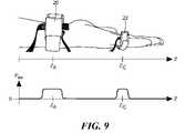 The two PPG sensor housings, each affixed to its respective measurement site with an adjustable elastic band, impose external pressure on the ulnar artery and digital artery wall, respectively, along the sensor contact area. External pressurization of the artery is necessary for arterial pulse waveform acquisition with the PPG. The external arterial pressure outside the sensor location areas is assumed to be negligible. A sketch of the distributed external pressure, Pex(z,t) along the arterial pulse transit path is shown along with thesensors20 and22 inFIG. 9, where zAdenotes the measurement site of the wrist PPG signal and zCthe measurement site of the finger PPG signal.