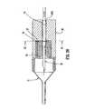 FIG. 22 is a side cross-sectional view of the I.V. catheter assembly and needle safety device shown inFIG. 20 with the catheter assembly separated from the lock assembly;