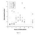 FIG. 2 is a scatter plot representation of the mRNA expression ofBMPs 2 and 4, TGF I, 2, and 3, FGF-2, alkaline phosphatase, and osteocalcin when stem cells are exposed to a capacitively coupled electric field with an amplitude of 20 mV/cm for various time durations. As indicated, the maximum expression for the various mRNAs occurred with a signal duration of 12 hours.