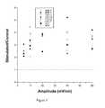 FIG. 1 is a scatter plot representation of the mRNA expression ofBMPs 2 and 4, TGF I, 2, and 3, FGF-2, alkaline phosphatase, and osteocalcin when stem cells are exposed to various capacitively coupled electric field amplitudes. As indicated, the maximum expression for the various mRNAs occurred within a range of signals from 10 mV/cm to 60 mV/cm.