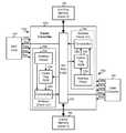 FIG. 2 shows anASIC200 with multiple embedded processors and a single-level cached memory system.ASIC200 includes amicroprocessor210, aDSP220, and a sharedmemory bus258 that couples to an externalmain memory260 located outside ofASIC200.Microprocessor210 implements a “Harvard” architecture, which usesseparate instruction cache214aanddata cache214bto store instructions and data, respectively. Aninstruction cache controller212aand adata cache controller212bare responsible for paging instructions and data back and forth betweenexternal memory260 andcache memories214aand214b, respectively.