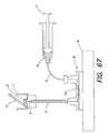 Next, a solution containing the nucleic acid-coated beads is applied with a precision pipette to the minor reservoir, as shown inFIG. 64. This application produces a large droplet at the top of the reservoir. The volume of solution added is equal to the volume of the flow chamber (e.g., on the order of 10 μL), and has a concentration of beads, such that when added to the volume of buffer solution initially in the minor reservoir, produces the desired concentration of beads to be delivered to the flow cell. The pipette is retracted, and the syringe is pulled carefully and slowly until the droplet recedes to the top of the minor reservoir, again viewed through the transparent major reservoir as shown inFIG. 65. Because the microfluidic channel extending down from the minor reservoir is very small (e.g., on the order of 0.01″ diameter), very little mixing occurs between the bead solution and buffer solution in the fluidic path during this process.