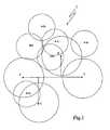 In order to simplify the representation, the nodes represented in the figures are ringed by circles that symbolize overall on the one hand the transmission range and on the other hand the reception sensitivity. When two circles intersect, it is assumed that the nodes corresponding to these circles can intercommunicate.