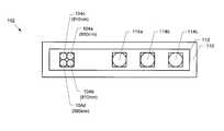 FIGS. 1A and 1B show an optical sensor module (OSM)102, according to an embodiment of the present invention. TheOSM102 is shown as including fourlight sources104a,104b,104cand104dand threelight detectors114a,114band114c. Depending on the specific implementation, theOSM102 can include less or morelight sources104 andlight detectors114. It is even possible, though not preferably, that a singlelight detector114 be used.