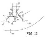It is desirable to advanceflexible needles80 and84 along pathways that are substantially co-planar withtissue94 rather than substantially perpendicular totissue surface92. In order to advanceneedle tips82 and86 along a pathway that is co-planar with the targetedtissue94,distal catheter end77 should be positioned perpendicular againsttissue surface92 and not in a canted position as illustrated inFIG. 10. In the canted position shown, advancement ofneedle84 intotissue94 results in aneedle pathway98 substantially perpendicular totissue surface92.Needle80, which enterstissue surface92 at an angle, will follow apathway97 that is substantially planar with thetissue94 but is at a shallow depth within thetissue94.