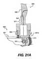 Cuttingdevice630 may be configured to move between a retracted position (FIG. 21A) and a deployed position (FIG. 21B). Cuttingdevice630 may be deployed via aplunger610.Plunger610 may be part of a ratcheting system (FIG. 21A) that is operatively connected to cuttingdevice carrier650 and cuttingdevice630. Translational movement of afirst actuating mechanism312 may cause rotational movement of gears and belts, which in turn may cause translational movement ofplunger610 and cuttingdevice carrier650 in the directions ofarrow611, resulting in deployment and retraction of cuttingdevice630.